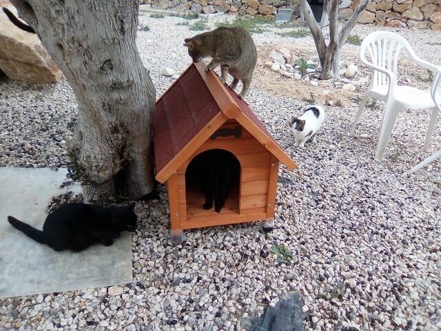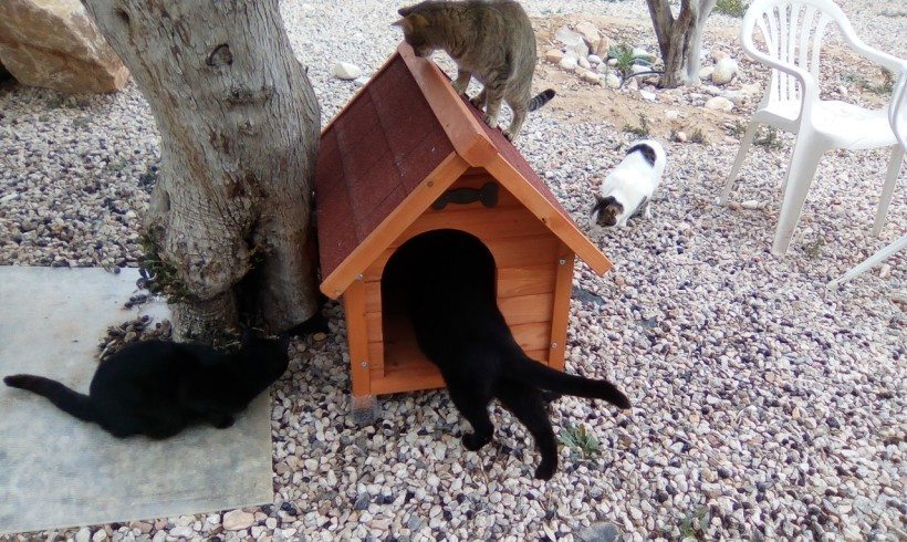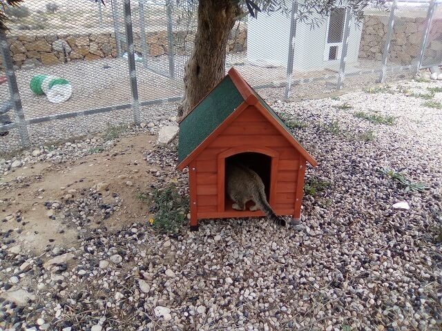 El sábado pasado recibimos unas casetas donadas por Animal Respect e.V. A nuestros gatos les encanto la idea. En cuanto pusimos las casetas en su jardin muchos gatos se acercaron a oler y a probar los nuevos sitios para esconderse y jugar un poco. India, estuvo entrado y saliendo varias veces hasta que se acosto a descansar un rato. Espero que nuestros gato Hernan se decida a probarlas tambien. El siempre se refugia en la otra esquina del jardin para que los demás lo dejen tranquilo.