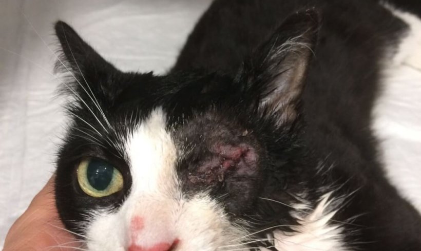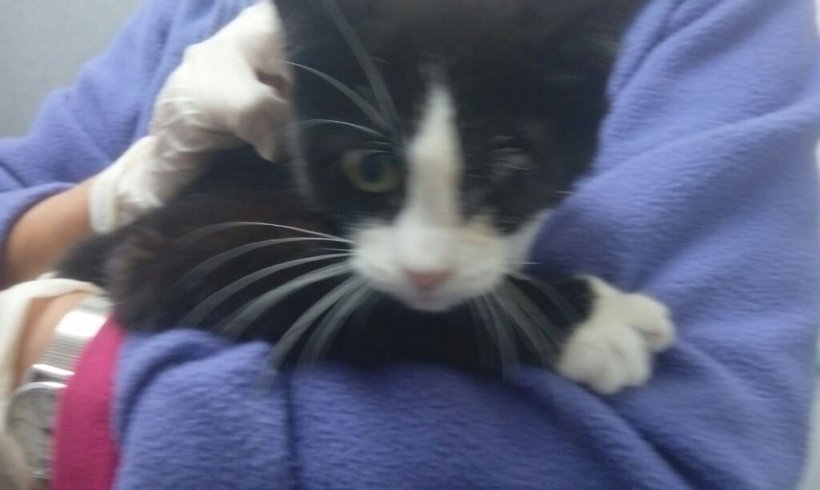 Casi todos los animales que entran en las instalaciones tienen un pasado más o menos amargo detrás, pero algunas veces, es realmente cruel como es el caso de Samanta, una gatita que vino junto a sus dos hermanas, con un ojo en muy malas condiciones. Cuando la vimos Samanta estaba sin fuerzas, con esa masa enorme en el ojo, y enseguida la llevamos al veterinario. No se pudo operar inmediatamente y se la ingreso para administrarle todo lo necesario para conseguir estabilizarla y recuperar sus fuerzas.